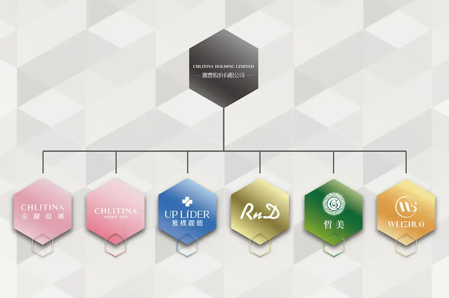 -CHLITINA beauty salon franchise. -RnD manicure and eyelash salon franchise. -UP LiDER, self-operated medical aesthetics and anti-aging clinics. -CHLITINA HOMESPA online and omnichannel retail. |